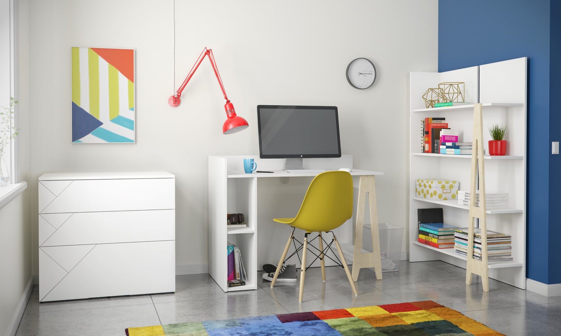 - L'ensemble Atypik #403045 comprend le bureau, la bibliothèque et le classeur 3 tiroirs (608003, 608503, 608603).