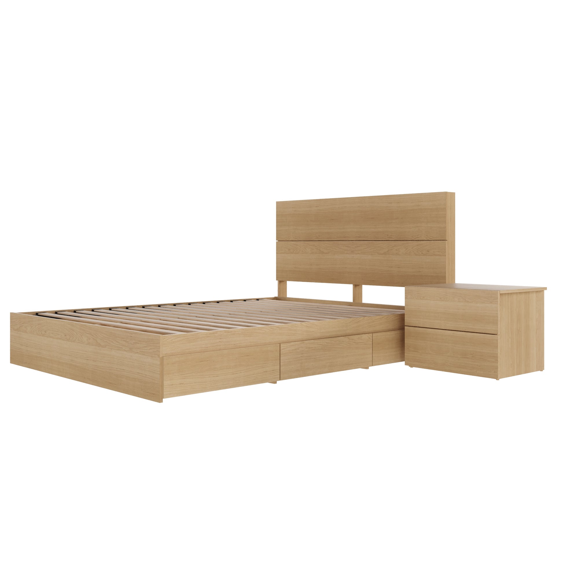 Ensemble de chambre à coucher réversible Milo 3 pièces, 1 table de nuit, lit double