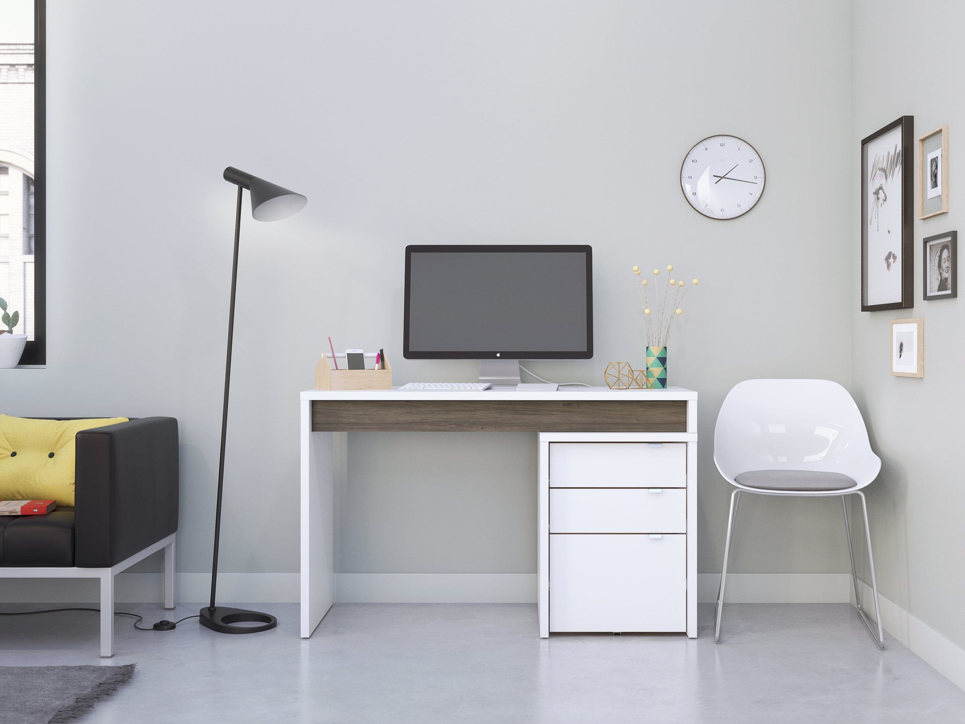 Young and fresh, the Libert-T Collection from Nexera has everything to please; its modern white finish with chic walnut accents and its mix-and-match design allows you to create your own very trendy home office or entertainment set.